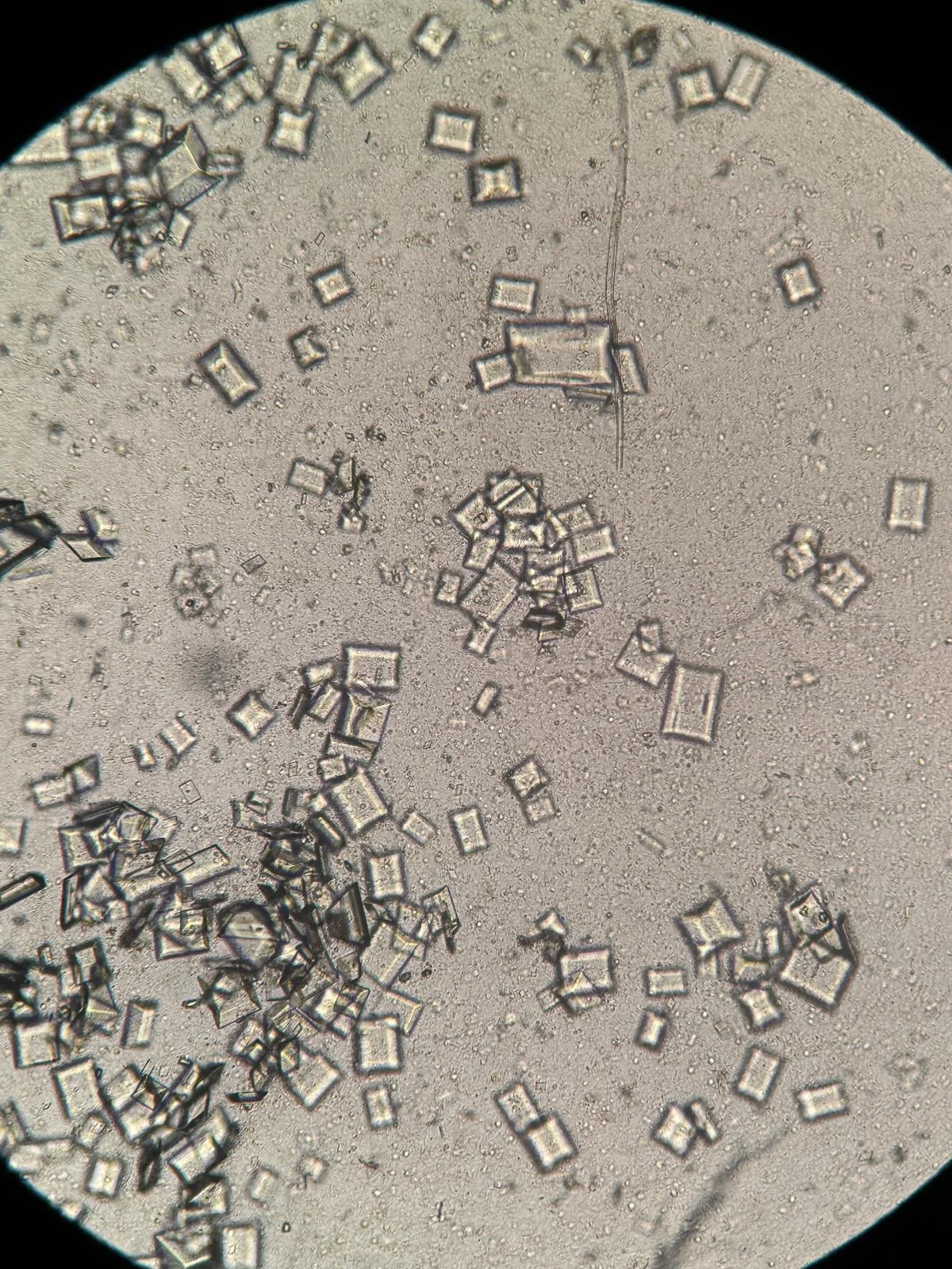 Observarea cristalelor urinare, care pot indica un risc crescut de formare a pietrelor la nivelul rinichilor sau la nivelul vezicii urinare.